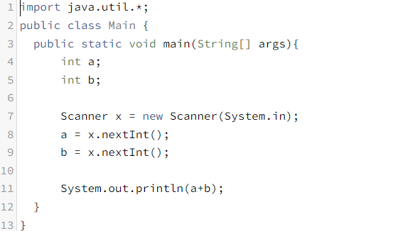 두 정수 A와 B를 입력받은 다음, A+B를 출력하는 프로그램을 작성하시오.